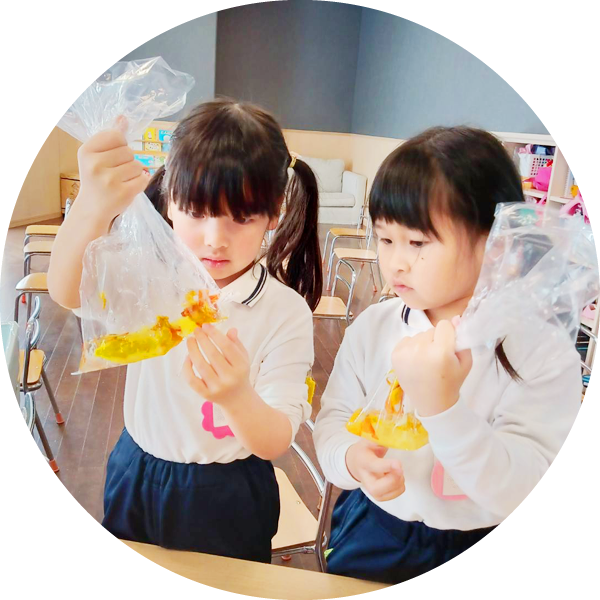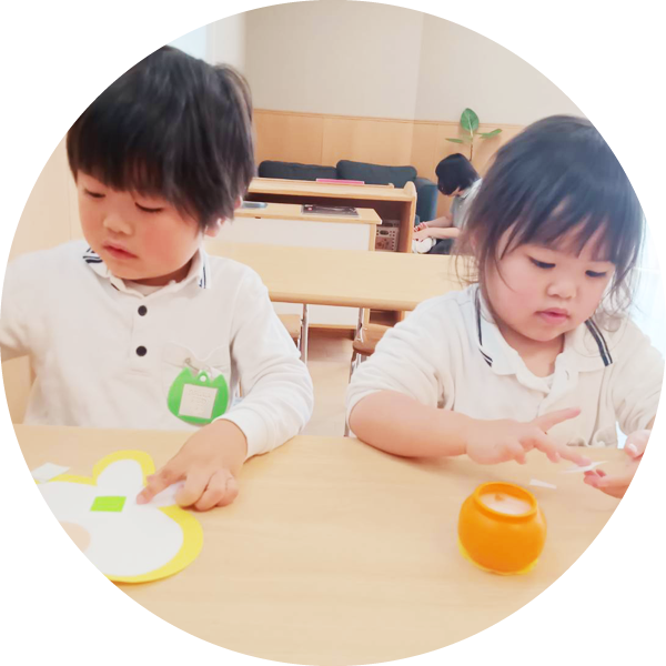 「発想力」「創造力」「思考力」「行動を作り出す力」、そんな感覚を乳幼児期に身に付けると、その力はどんどん成長していくものです。その感覚を身に付け、育てることを大切にしています。