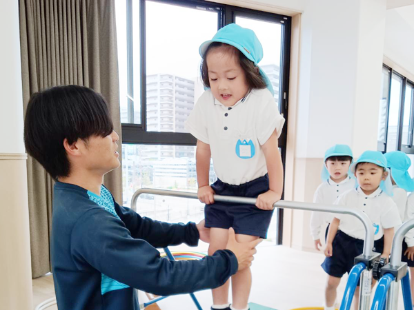 保育士の先生と連携を取りながら、お子様の発達に応じて段階的かつ継続的に援助していきます。